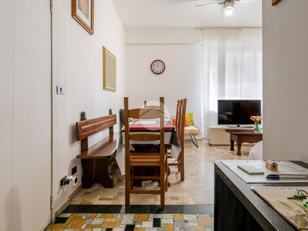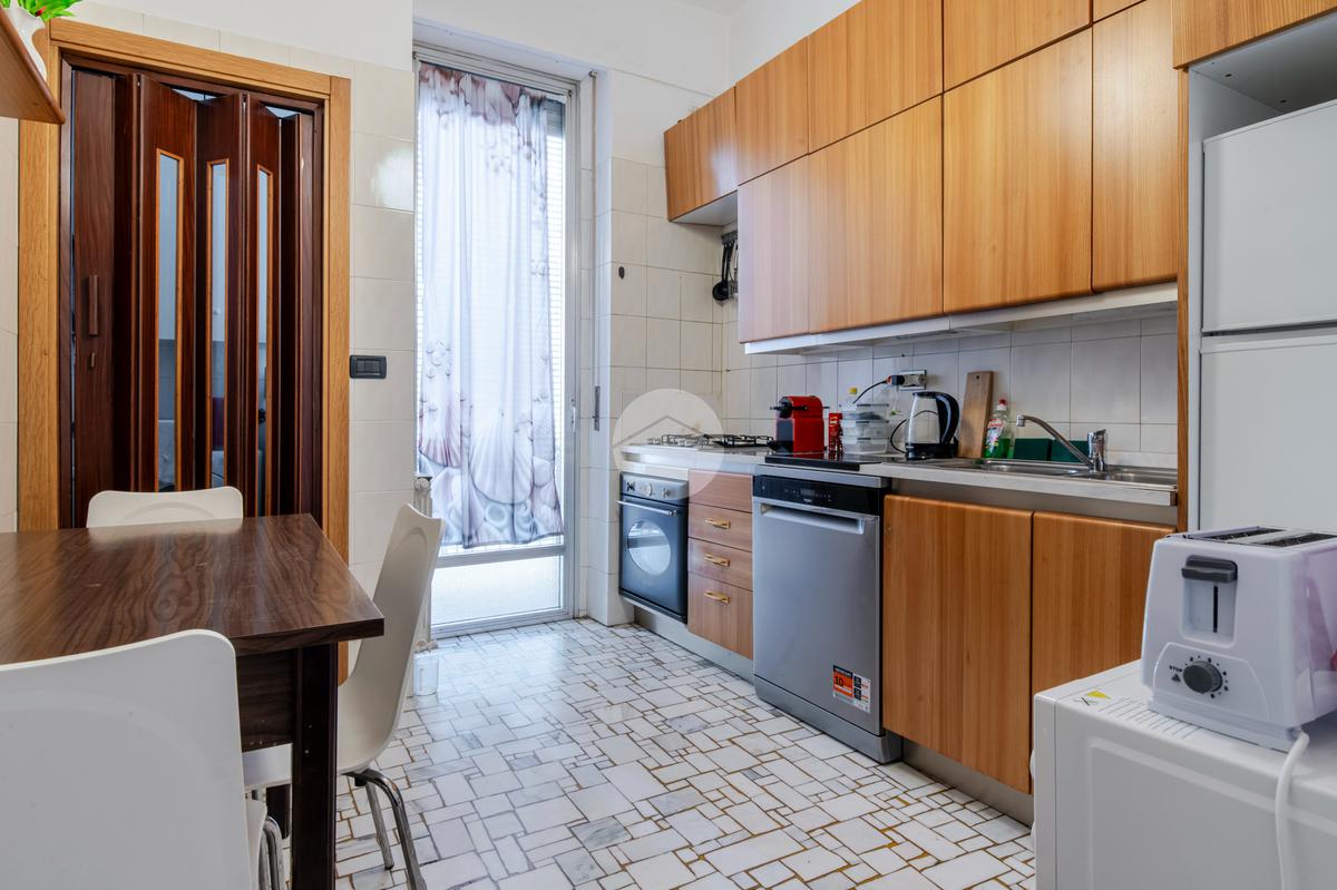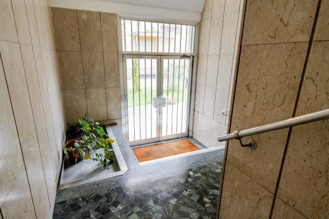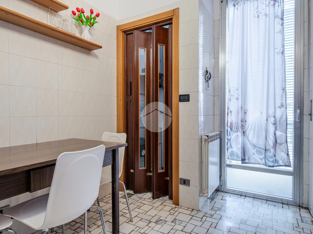 L'appartamento risulta essere così composto: ingresso in corridoio dal quale possiamo accedere ai vari ambienti della casa e dove troviamo in primis, rispettivamente sull'esposizione sinistra , il soggiorno luminoso finestrato e con piacevole affaccio sulla Via Privata Vacani e, sull'esposizione destra l'ampia cucina abitabile con lavanderia, dotata di accesso al balcone della casa con vista gradevole su giardino condominiale.