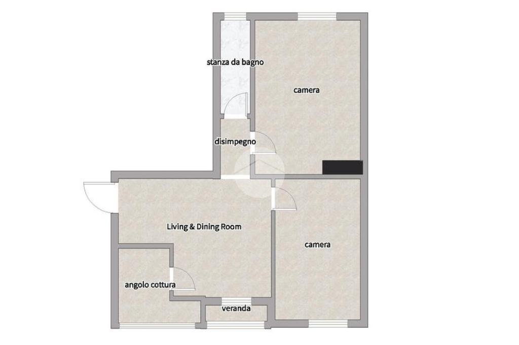 L’appartamento si presenta così composto: ingresso su disimpegno che conduce alla luminosa zona living, con cucinotto separato e finestrato. Il soggiorno è dotato di porta-finestra con accesso alla veranda, dalla quale si gode di un tranquillo affaccio sulla corte interna, uno spazio ideale per beneficiare della luce naturale durante tutto l’arco della giornata.