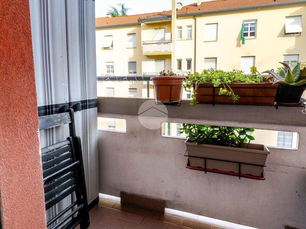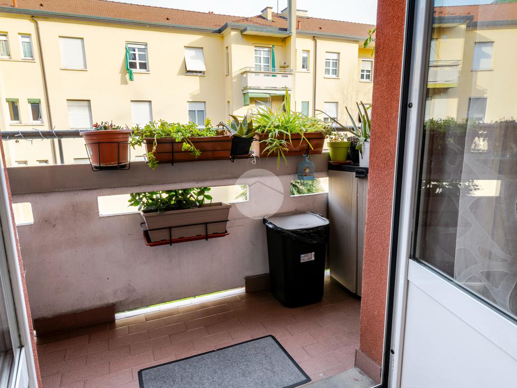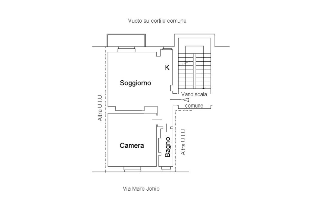 L'appartamento risulta essere così composto: ingresso diretto nel soggiorno con cucina a vista, valorizzato da una porta finestra che conduce al balcone, caratterizzato da un gradevole affaccio sulla corte interna, che garantisce tranquillità e riservatezza.