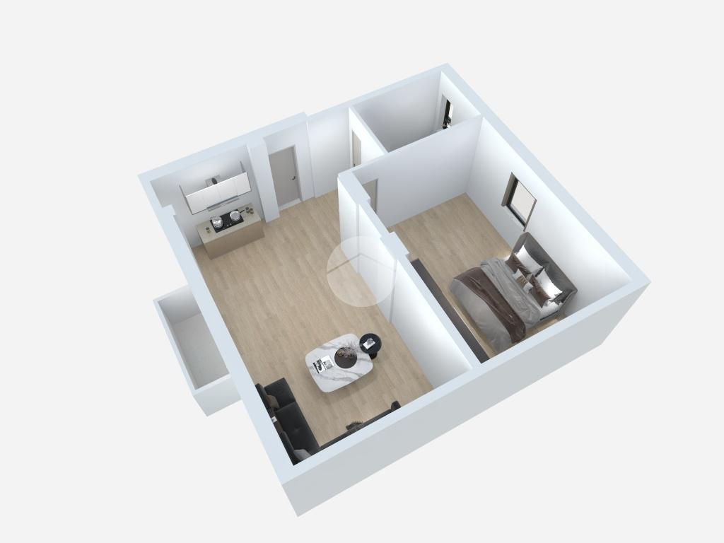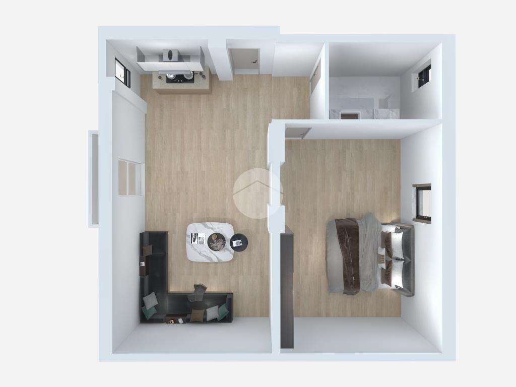 Un disimpegno ci accompagna nella zona notte, dove troviamo la camera da letto, finestrata e con esposizione opposta rispetto alla zona living, ed infine il bagno finestrato, completo di box doccia in muratura.