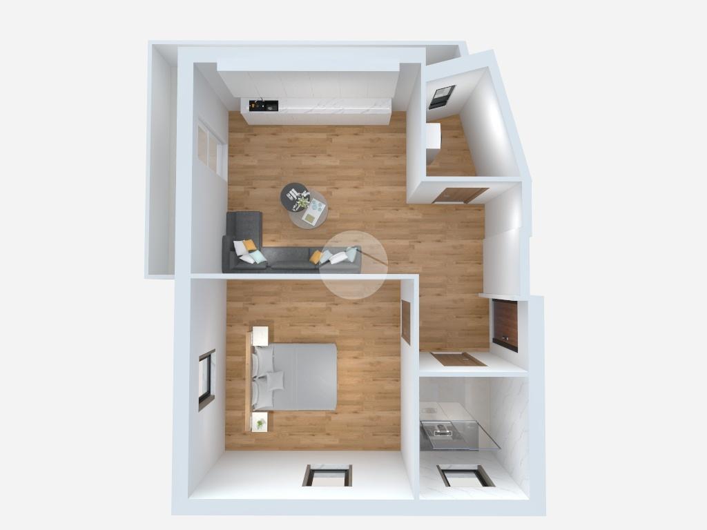La zona notte, ospita una camera matrimoniale finestrata e con medesimo affaccio della zona living.