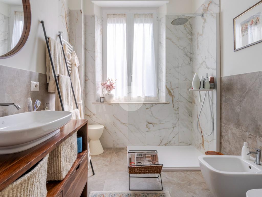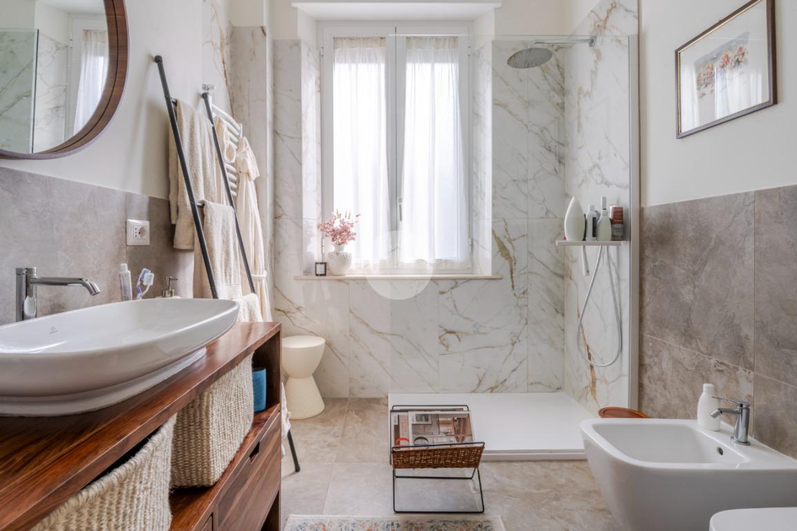 A seguire troviamo Il bagno finestrato , dotato di doccia walk-in.