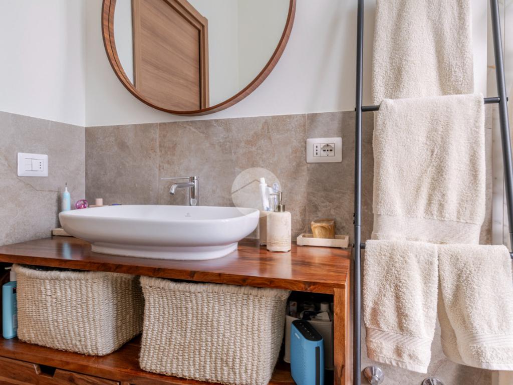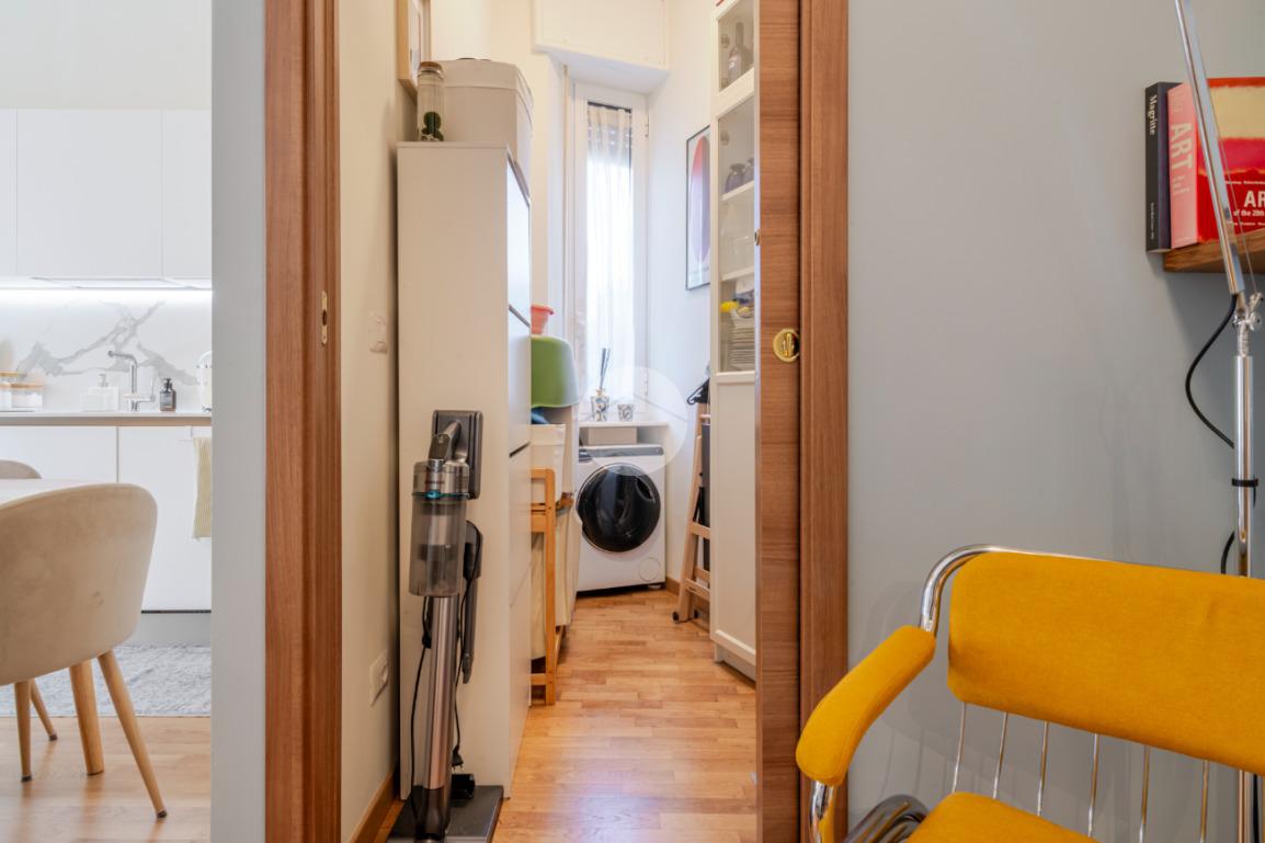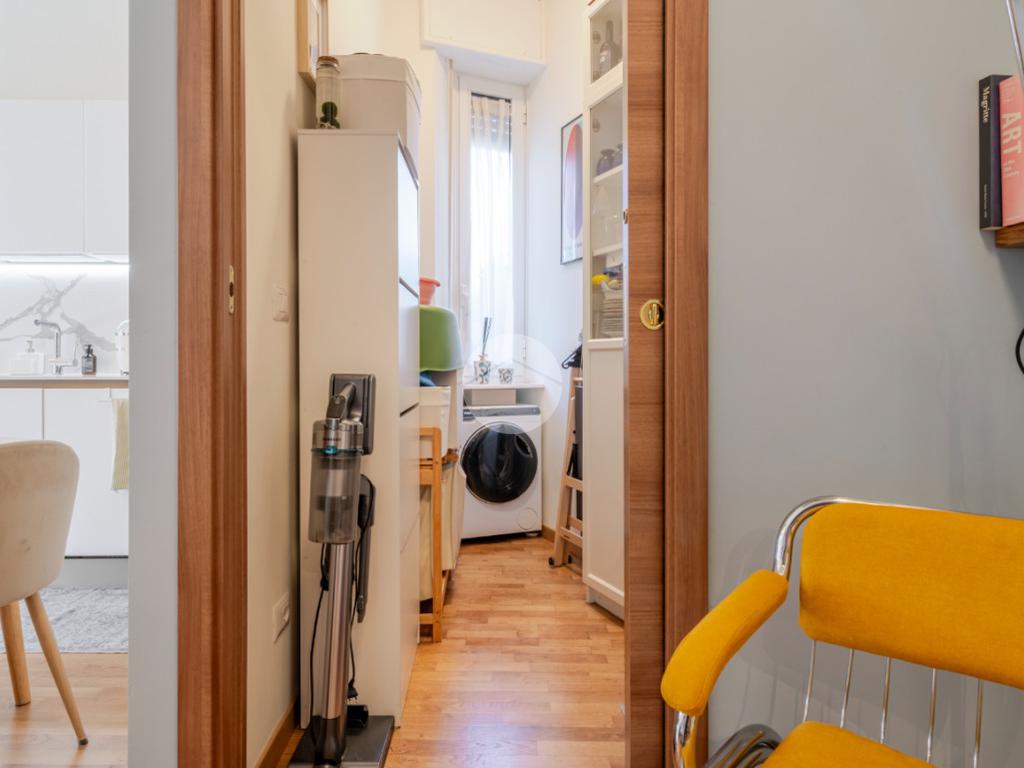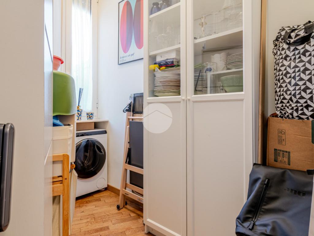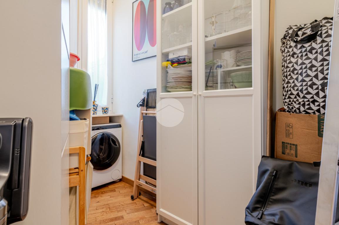 Completa la proprietà un ripostiglio attualmente adibito a lavanderia, perfettamente organizzato per lavatrice, asciugatrice e scaffalature, elemento che ottimizza la gestione degli spazi domestici , un ampio ripostiglio in quota e la possibilità di parcheggio sotto casa.